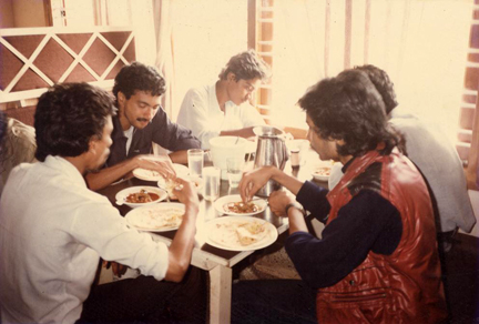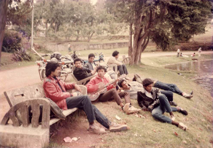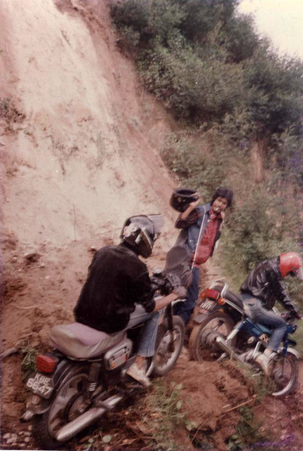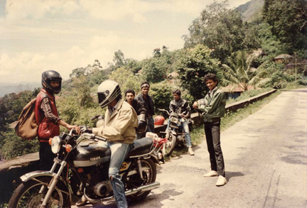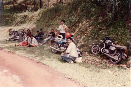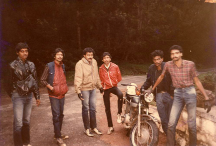 I don’t remember who, but one of the bikers didn’t turn up. So it was seven guys & three bikes – one of us had to drop out, and nobody wanted to. So we decided to ride triples on Biju’s RD 350!